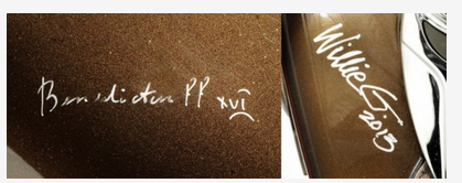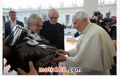 這一回將要進(jìn)行拍賣的哈雷摩托車是一輛 FLSTC 103,由教皇本篤十六世賜予祝福。車身上有本篤十六世和哈雷戴維森高級(jí)副總裁兼首席造型設(shè)計(jì)師威利·G·戴維森的簽名,相當(dāng)珍貴。