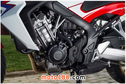 CB650F搭載的并列四缸屬全新研發(fā),并非CB600F的簡(jiǎn)單擴(kuò)缸機(jī)。這臺(tái)水冷、DOHC 16氣門的并列四缸,采用了67mm×46mm的缸徑和沖程,排量為649 mL,比上一代的“大黃蜂”多出50mL。但這只是表層現(xiàn)象,實(shí)際上,這顆“心臟”內(nèi)在結(jié)構(gòu)與之前迥然不同。