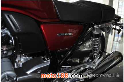 從外觀來看,CB1100仍然采用了CB系列經典的復古造型。流暢而簡潔的外觀設計,依舊讓人賞心悅目。紅黑灰三色的組合也沿襲了CB400的風格。包括圓 燈圓表、消音器、油箱的造型,如果不仔細看,你都會誤以為這就是CB400。然而,碩大厚重的發動機總成以及大口徑的前后碟剎,都會準確無誤的提醒你,這 是一匹難以駕馭的怪獸。