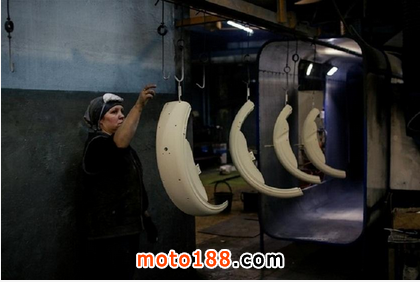 在噴漆車間,主要是女工在這里工作。她們說每天工作都很輕松,一天完成五輛摩托的噴漆工作,在蘇聯時期,她們每年要為10000輛摩托噴漆。