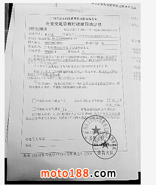 核心提示: 番禺交警表示,廣州屬禁摩區,外來摩托進入都要以涉嫌盜搶扣留 車主陳先生出示的罰單顯示,交警以盜搶嫌疑扣車。 南方農
