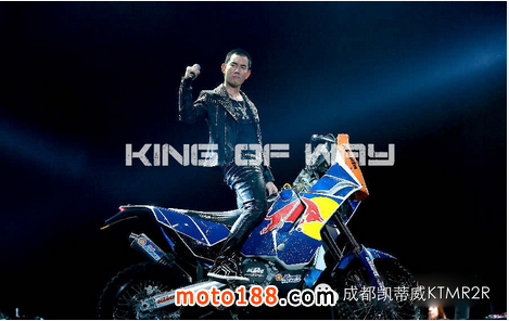 2014年12月31日,任賢齊帶著帥氣的KTM 450 Rally,在天津舉辦了“任賢齊·齊跨年演唱會”。演唱會上,任賢齊不僅深情演繹了經典情歌《心太軟》《傷心太平洋》《我是一只魚》等,也為粉絲們一展自己心愛的KTM 450 Rally,這款車外形延續了以往690 Rally的風格,獨特的頭罩、裸露的發動機鏈條、犀利的雙燈設計,宛如一個十足的硬漢。該車空油145公斤的重量,雙油箱的設計能讓450 Rally續航里程更遠。它的發動機采用了KTM公司生產制造的單杠四沖程發動機,449.3cc的排量,匹配五擋變速器,動力強勁,能輕松應對各種路況。KTM為 450 Rally配備了前300mm、后240mm的菊花碟剎,制動性能出色。