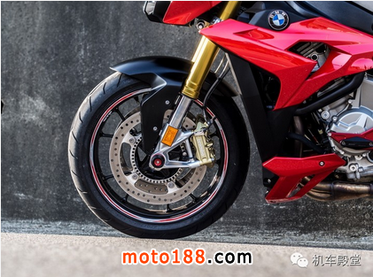 320mm碟盤搭上對向四活塞輻射卡鉗,實際騎乘起來的煞車回饋感都很不錯,而搭載了BMW Race ABS系統,要發揮其最大功效的話還是要選配DTC套件的話便可透過設定達到更極端的操控感受,例如單獨關閉后輪ABS來進行鎖死滑胎的進階騎乘控制等…(不過一般人應該玩不到啦。
