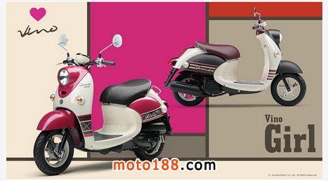 下圖的 XC50D Vino,工廠編號JBH-SA37J/A313E,沿用一副水冷四沖程單汽缸、OHC 三汽閥的發動機,電子燃油噴注系統,最大動力輸出 3.1 kw(4.2匹)。與現有銷售中的版本相比,新車最大的變化是車身顏色。新的 Vino 采用了兩個車身圖案的命名方式:男性色彩的稱之為 Vino Boy,圖案有兩個;女性色彩的稱之為 Vino Girl,圖案則多達五個。廠方同時稱,為了能夠充分滿足現代女性對時尚的追求,這部新的 Vino 還采用了女性的設計團隊負責開發。新的 Vino 預計在下月的14 號開始供應本土市場,公布的當地含稅零售價為 20.412 萬日元(折合人民幣約為 1.08 萬元),廠方的年度銷售計劃約為 1.1 萬部。