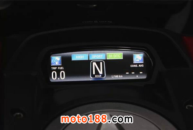 Diavel專屬的雙顯示屏,LED顯示(上)和TFT彩屏(下)。LCD表板顯示數(shù)據(jù)相當之豐富,除了一般常見的行車資料外,還有DTC介入警示燈、ABS系統(tǒng)狀態(tài),油壓和后備燃油燈,讓您在騎行過程中只一瞥,就全部囊括其中。TFT彩屏讓騎士在騎行中除了速度和轉(zhuǎn)速外可以最直觀的了解到當前騎行中的波段、空氣溫度、電壓、兩段里程計、剩余燃油航距、平均及實況油耗數(shù)據(jù)、速度、ABS、DTC,旅程時間和下次檢修時間等各項數(shù)據(jù)。這上、下兩屏可謂是麻雀雖小五臟俱全。