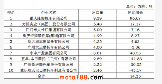 核心提示: 2015年1月摩托車生產企業出口量排名(TOP 10)