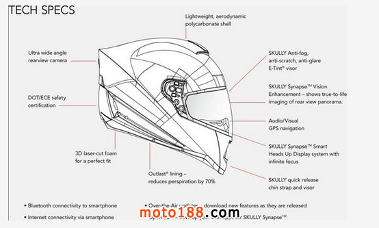 新浪科技訊 北京時間2月28日早間消息,創業公司Skully開發了內建顯示屏的摩托車頭盔,并試圖將豪華轎車的功能提供給摩托車車主。該公司近期完成了1100萬美元的融資。