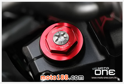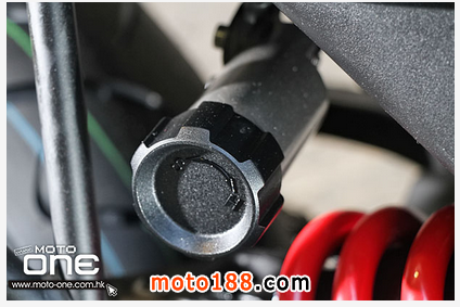 ●新的41mm前避震采用現時流行的左右獨立調校前叉,預載調校設於左前叉頂上,回彈調校則設於右前叉頂上。