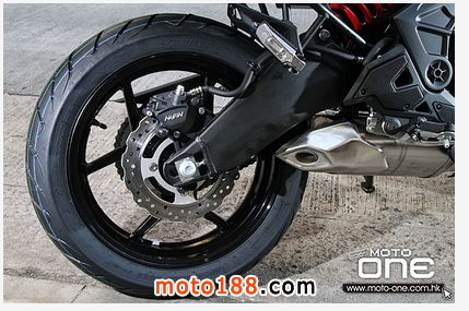 ●尾制動由舊款220mm菊花煞車碟改用250mm更大呎寸菊花煞車碟,同樣配備新設計的煞車卡鉗。