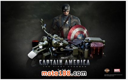 哈雷戴維森這個老牌,似乎和超級英雄“科幻”超現實形象不太接近的廠商近年來也有大動作。先是在《美國隊長1:第一個復仇者》中,讓美隊跨上了WLA軍用摩托車,對應劇情時間和美隊的軍人形象,這種組合還是相當符合邏輯的,實際效果也相當的炫酷。