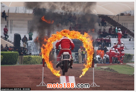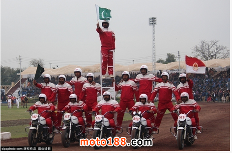 核心提示: 當地時間2015年3月6日,巴基斯坦拉合爾,第15屆國家家畜展覽會開幕式上,巴基斯坦人表演騎摩托車疊羅漢的高超技藝。看來南亞