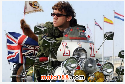Scooter,我們俗稱踏板車,這種簡易結構的摩托車是Mod的標準裝備。當然,正統的Mods會在改裝環節上花很多心思。典型的是前 擋板加上大量反光鏡和大燈。