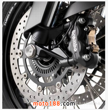 ★更高配置的剎車系統:Brembo直推手泵,放射式對向四活塞卡鉗,前后浮動碟剎車系統,配備最新版本Bosch 9ME 帶越野模式的智能聯動C-ABS。
