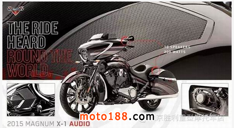 2015款勝利美國官網(wǎng)放出新款車型MAGNUM后,配套2015款勝利改裝配件同步發(fā)售,較2014款配件手冊相比新版改裝手冊涵蓋改裝類別更多,音響類改裝配件尤為突出。針對摩托車市場需求,勝利大熱車型MAGNUM推出"MAGNUM X-1",高規(guī)格音響系統(tǒng)升級,配備10枚揚聲器支持藍(lán)牙播放功能。