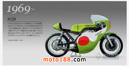 川崎H1R是為了參加500cc格蘭披治大獎(jiǎng)賽而設(shè)計(jì)的,基于川崎H1街道版,兩沖程三缸發(fā)動(dòng)機(jī)。1970年Ginger Molloy以第二名完成賽事,僅次于駕駛MV奧古斯塔的傳奇人物阿古斯蒂尼。