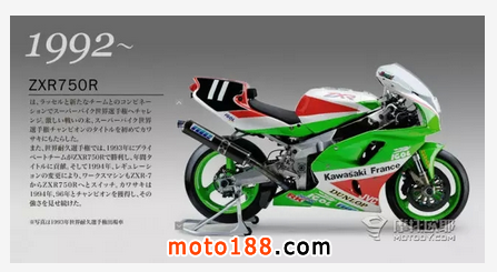 川崎廠隊(duì)于1988年到1991年參加的耐力賽,他們已經(jīng)贏得了世界冠軍,這是一個(gè)壯舉,他們?cè)?992年和1993年重復(fù)了巔峰。1993年,斯科特·拉塞爾和亞倫贏得了著名的鈴鹿8小時(shí)耐力賽,這讓當(dāng)?shù)氐拇ㄆ檐嚸孕老膊灰选?br />