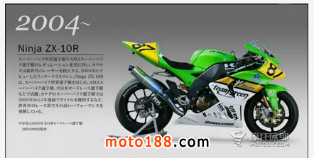 川崎忍者ZX-10R最初發(fā)布于2004年,并于2005年進(jìn)行小幅修改。它結(jié)合了超窄底盤、低重量和徑向制動(dòng)器。并在2004年和2005年獲得最佳超級(jí)摩托車稱號(hào)。目前,杠10活躍于WSBK等頂級(jí)摩托車賽事中,并獲得傲人成績(jī)!