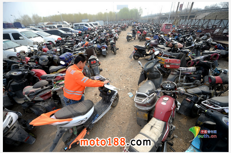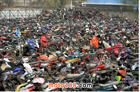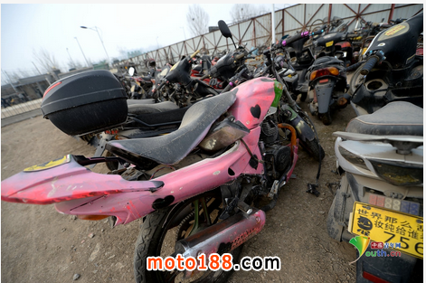 這些摩托車都是因無(wú)牌無(wú)證上路行駛或因事故被查扣的,停放時(shí)間都在半年以上,有的甚至放了一年多將近兩年,一直沒(méi)人來(lái)認(rèn)領(lǐng),大部分車輛是不能提供有效證件的“黑車”。按照現(xiàn)行政策,事故車輛停放在停車場(chǎng),在事故處理結(jié)束之后,交警部門(mén)會(huì)給車主發(fā)放“放車”通知,自通知發(fā)出之日起,三個(gè)月后無(wú)人認(rèn)領(lǐng),交警部門(mén)會(huì)對(duì)車輛進(jìn)行登記并在報(bào)紙等媒體上公示,公示三月后依然無(wú)人認(rèn)領(lǐng),交警就有權(quán)對(duì)車輛進(jìn)行報(bào)廢處理。