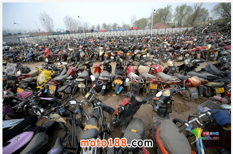 2015年03月20日,山東省濟(jì)南市二環(huán)北路太平莊西側(cè)的濟(jì)南交警大隊(duì)專用停車場(chǎng)內(nèi),停放近萬(wàn)輛事故車輛和暫扣車輛,其中有2000平方米的停車區(qū)域內(nèi),停放著一排布滿灰塵的二輪摩托車和電動(dòng)車,一輛挨著一輛緊緊擠在一起,不少摩托車車身銹損,長(zhǎng)時(shí)間無(wú)人移動(dòng),周邊長(zhǎng)滿野草,摩托車的數(shù)量在3000輛左右,有價(jià)值數(shù)萬(wàn)元的公路跑車,也有1000多元的踏板車。