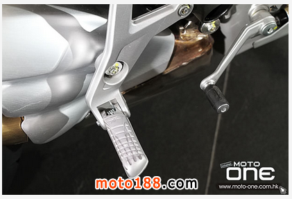 ●前掣動(dòng)是雙320mm浮動(dòng)碟配Brembo放射式四活塞卡鉗,一對(duì)擁有全調(diào)校的MARZOCCHI 43mm倒立前叉。