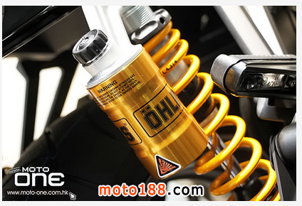 ●新車已配備金黃色的OHLINS雙筒尾避震。