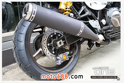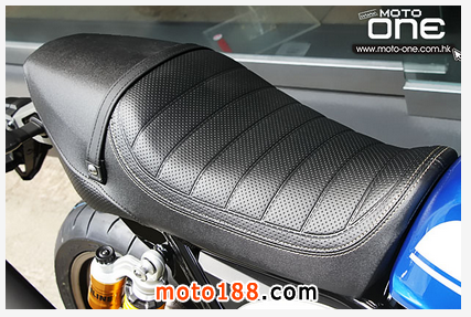 以1,300c.c.級別車子只配14.5公升油箱,聽下去不太合比例,就連一部 400c.c.級的油箱容量也不止此數,但新設計的油缸目的是讓車子看來更瀟灑之餘,更有效提高車子的靈活性,不失跑車的身份。她的旁冚正好是一塊不折不 扣的號碼牌,加上全新設計啞黑4出2出1排氣喉,還有那貌似單座位的設計,令她更是入形入格。請勿忽視那古典形燈翼啊?