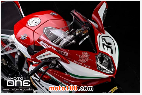 F4系列,包括F4、F4 R及F4 RR屬M(fèi)V AGUSTA的旗艦SUPERBIKE,早陣子已傳出廠方將會(huì)加推新成員,并有可能成為最大馬力的市販SUPERBIKE。最近,廠方終于公佈新車規(guī)格及 圖片,新車型號(hào)是F4 RC,原裝車馬力高達(dá)205hp(207.9ps),只要更換隨車附設(shè)的TERMIGNONI排氣管后,馬力便提升至212hp(215ps),而車輛干 重只有175kg,濕重是183kg,其重量/馬力的比例明顯較F4 RR更優(yōu)勝,再者F4 RC只限量250臺(tái),因此十分珍貴。