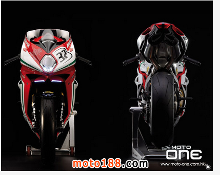 ●最新MV AGUSTA F4 RC版,全碳纖包圍配上車廠參加WSBK拉花,是現(xiàn)時(shí)最大馬力的市販SUPERBIKE,並且改用金黃色的鎂合金制離合器外殼。