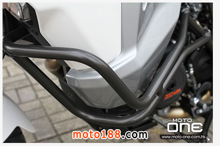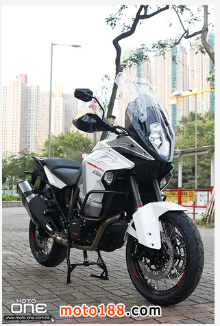而包羅萬(wàn)有的實(shí)用裝備包括胎壓監(jiān)察器(儀表上顯示胎壓數(shù)據(jù))、發(fā)熱扭油筒、發(fā)熱座墊、無須扭油的定速行駛、釘把(防甩頭)、引擎防跌架、可調(diào)校高低的轪把、可調(diào)式風(fēng)鏡等等。老實(shí)說,看罷官方介紹后,感覺車輛是一臺(tái)SUPERBIKE化的冒險(xiǎn)車。