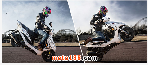 起步時,勁麗電噴的表現讓車手有種喜出望外的感覺,油門一動車身立馬一躥,稍稍給點油就能迅速駛離原地。此后,絲絲入扣的油門響應會一直延續到60km/h之后,在低中轉速區間,抬起前輪絕對小菜一碟。顯然,這款小車的前段扭矩是可以用“強悍”來形容的,加速性能不次于市面上的125mL級踏板車型。在轉速超過7000r/min之后,,提速逐漸趨緩,但表盤上的時速顯示早已過了80km/h,實際上,這款電噴發動機可以很輕松地將速度超越90km/h,在高速性能上也絲毫不遜于125mL級同類機型。