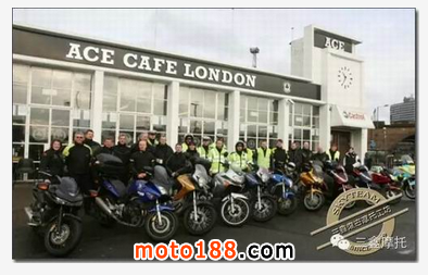 這間歷史悠久、位于倫敦的咖啡館"Ace Cafe London"是非常著名的咖啡賽車朝圣地。從1938年營運至1969年歇業,1997年再次重新開張。Ace Cafe London 一直致力于提倡咖啡賽車。而象徵店徽的"黑桃",也漸漸變成咖啡騎士們的精神表彰,直到今日。