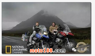 好了,讓我們把思緒還是拉回英國,既然是一個有著如此豐富摩托文化的國度,那一定不乏喜愛它的人了。國家地理曾拍攝了一部紀錄片《LONG WAY DOWN長路迢迢》,講述了兩英國摩托愛好者從蘇格蘭到非洲的摩旅歷程。著名影星Ewan McGregor(<<紅磨坊>>男主角)和好友Charley Boorman于2007年5月12日出發,他們駕駛著BMW R1200GS摩托,從英國的最北端,蘇格蘭的John O’Groats出發,歷時3個月,超過24140千米,穿越18個國家,于2007年8月5日到達南非開普敦,非洲大陸的最南端Milnerton。