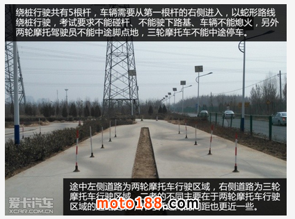 在摩托車(chē)的場(chǎng)地駕駛技能考試中,必考科目有四項(xiàng)(兩輪摩托車(chē)和三輪摩托車(chē)都是如此),繞樁行駛、單邊橋、坡路定點(diǎn)停車(chē)和起步,其余科目只是在行駛路線中會(huì)經(jīng)過(guò),因此培訓(xùn)過(guò)程也重點(diǎn)是針對(duì)考試科目來(lái)進(jìn)行教學(xué)和訓(xùn)練。