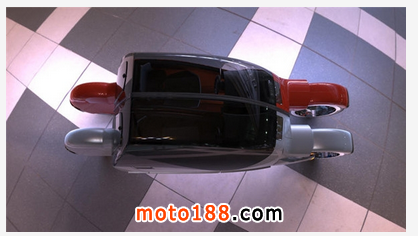 駕駛員是以駕駛賽車的姿勢坐進車里的,而摩托的頂部有著遮罩,看起來就像汽車一樣,而頂蓋可以從前向后翻起。