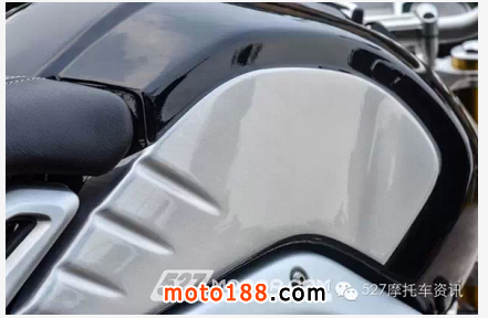 下圖為R nineT原廠油箱拉絲紋在不同光照條件下呈現的質感