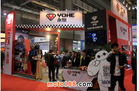 來(lái)到展館中央,此處人氣聚集,抬頭一看,“中國(guó)第一品牌”映入眼簾,原來(lái)是國(guó)內(nèi)知名廠商,頭盔行業(yè)的領(lǐng)軍企業(yè)---佛山市南海永恒頭盔制造有限公(后面簡(jiǎn)稱永恒頭盔)的展位。據(jù)了解,永恒頭盔成立與1993年,至今有22年的歷史,是國(guó)內(nèi)自主頭盔品牌的行業(yè)第一。