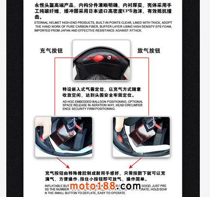 4、除以上優(yōu)異特性外,最為人性化的一點(diǎn)則為YH-957這款頭盔調(diào)節(jié)舒適性的安全氣囊。只有汽車才聽(tīng)過(guò)有安全氣囊,頭盔也有,高大上??!佩戴者只要按壓專制開(kāi)關(guān),即可調(diào)節(jié)安全氣囊的充氣量大小,提高臉部的貼合度和舒適度,能有效的保護(hù)騎行者的安全,設(shè)計(jì)者真是想的太周全了。(還有哦,往下看↓)