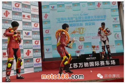 2015全國公路摩托車錦標賽南京溧水站比賽5月3日在南京萬馳國際賽車場收官。中國宗申車隊在繼第一回合決賽拿下個人冠亞軍之后,今天再次包攬廠商杯250CC組的個人冠亞軍和團體冠軍。