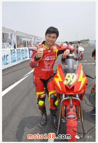 5月3日,2015全國摩托車公路賽南京站啟幕,宗申車隊正式開始了今年的衛冕之路。在廠商杯國產250CC公開組兩輪資格賽中,宗申車隊老將何智鋒連續奪得第一,并拿下了南京站正式比賽第一回合的冠軍。