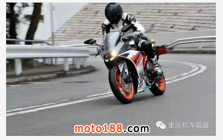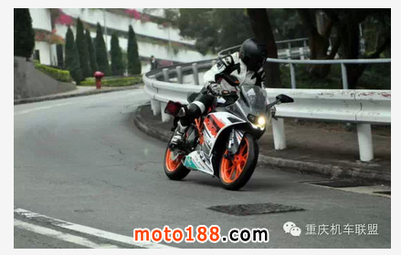 試騎時Alex曾在安全情況下,長時間放開雙 手,只以雙膝夾油缸,也可輕易操控車身作正常轉向。所以當加上推胎和外掛動作后,RC390處理彎道的能力,實在讓人大為贊賞。