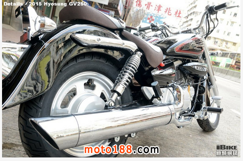 風(fēng)油冷GV250雖然是排氣量249cc,它的外形毫不輸蝕。肥厚的頭尾輪沙板、正立前叉包有電鍍套筒和大油缸,論賣相和體積都可以媲美 Honda Magna 250。GV250的駕駛姿勢(shì)似街車多於美式巡航車,雙腳最為彎曲,雙臂也不用張開,好處是操控較靈活。176kg車重和710mm座高也是相當(dāng)容易處理的數(shù)字。
