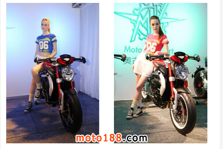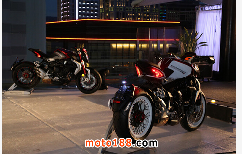 現(xiàn)場(chǎng)請(qǐng)來(lái)Dancer 熱舞表演外,還找來(lái)兩位外模,以美式運(yùn)動(dòng)風(fēng)格的穿著,搭配Dragster RR 這具有美式街頭戰(zhàn)士風(fēng)格的車款。當(dāng)Dragster RR 正式揭幕後,這充滿藝術(shù)感的車身線條,精致的細(xì)節(jié),巧妙的配色,真不虧是以「Motorcycle Art」做為車廠標(biāo)語(yǔ),MV AGUSTA 的車款。