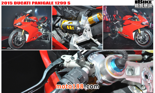 1299的Engine由1198cc撥大到1285cc,個piston bore比1199大了4mm到116mm,壓縮比是12.6:1,而這幅引擎要用上全新設計的活塞,Liner,新曲軸,新連桿。結果1299得出的馬 力是205匹,大1199差不多10匹,杻力145Nm,也比1199大10多Nm。外觀上的改變,前包圍加闊了,風鏡也高了,左右兩邊包圍也是新的,尾部split open也是新設計,這些改變在Aerodynamics上會有幫助。而最重大改變是電子方面,以前有的如DTC防打滑(Ducati Traction control)和EBC引擎牽引(Engine Brake Control)固然在,新的東西就有了DQS Up/down電子轉波 (Ducati Quick Shift),DWC防起頭(Ducati Wheelie Control),和Cornering ABS彎道防鎖死。