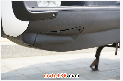 4.儲物空間明顯不足,前儲物箱“形同虛設”僅僅能放付手套或面巾紙,后座桶放3/4頭盔都勉勉強強就別說全盔了(怪不得此車在歐洲尾箱是標配)。