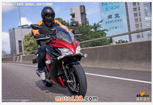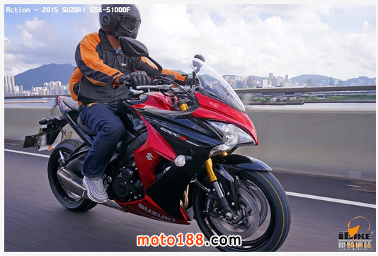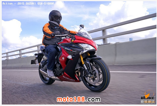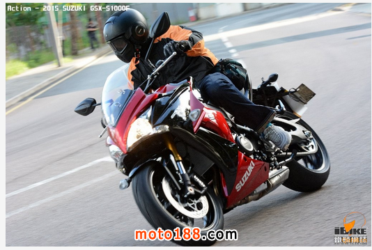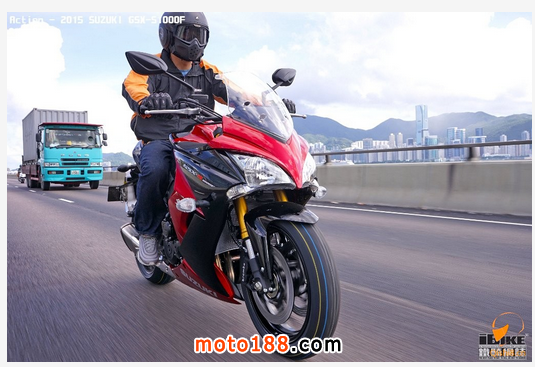 F版雖然多了Full Fairing,但高速行車時別以為騎士可以比街車版免除風壓。因為F版的風擋低,位置又偏前,所以騎士仍然要對抗風壓。如果想再舒服一點,配置巡航級的長風檔是指定動作。引擎採用大R K5長沖程設計,中低轉扭力輸出相當豐厚,這是最實際最常用的區域,改為街車便是最適當的選擇。 雖然GSX-S1000F是有Full身影的街車,但腳踏相當高,轉向把手雖然闊,但位置偏前和低矮,結合815mm座高,是一個進取型的駕駛姿勢,但未至于為手腕 帶來沉重壓力。整體駕駛空間緊湊,中等身材的騎士應該會感到最舒適。如果手長腳長的高佬,坐上車便會感到有點屈手屈腳。