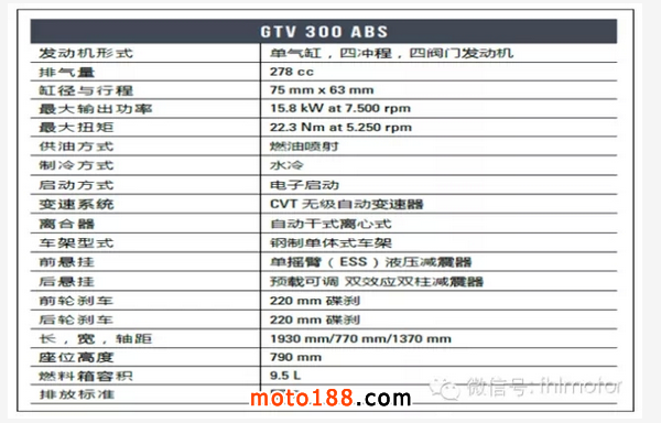 動力方面車架與發(fā)動機和GTS車系無異,USB接口插座同樣配備,而前減震采用全新的ESS懸掛系統(tǒng),前后ABS&ASR系統(tǒng)也是標(biāo)準(zhǔn)配置。