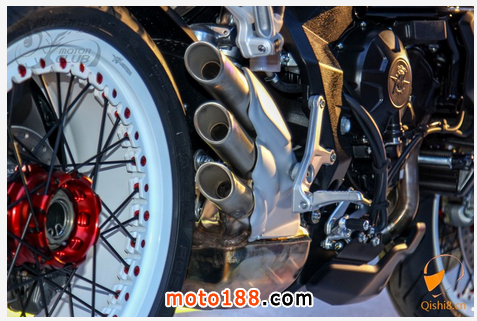 排氣管採用MV AGUSTA三缸車種特有的設計與F3 800相同,採用右邊三出式尾段