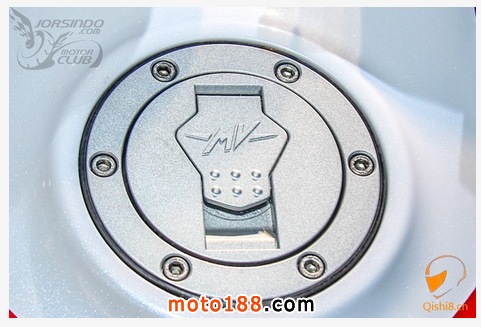金屬油箱蓋上有著MV AGUSTA的LOGO,看起來質感滿點