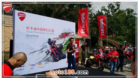 集結(jié)了全國杜卡迪DOC成員主席、成員代表以及各知名媒體的發(fā)車儀式于早上9點召開。此次西藏行,杜卡迪成都將有7名車主代表參加,為保證騎行安全,更有成都售后技師一路跟隨。儀式上,每個角落的杜卡迪元素無處不在,讓整個會議瞬間變成了杜卡迪海洋。