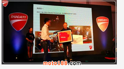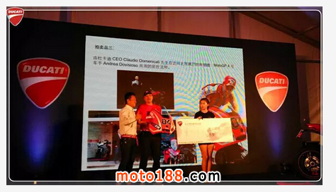 ▼第一件拍賣物品是杜卡迪CEO簽字T恤,由杜卡迪重慶的李先生所拍得